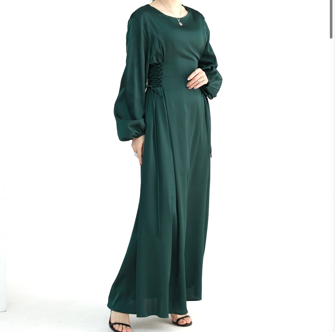 Beautiful, classic and stylish. The double-layered design of this abaya is a one-piece full-length maxi dress