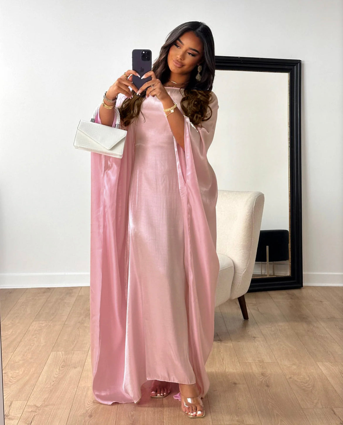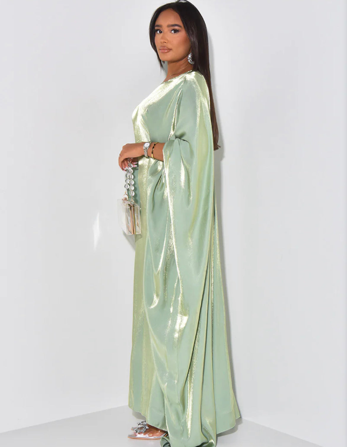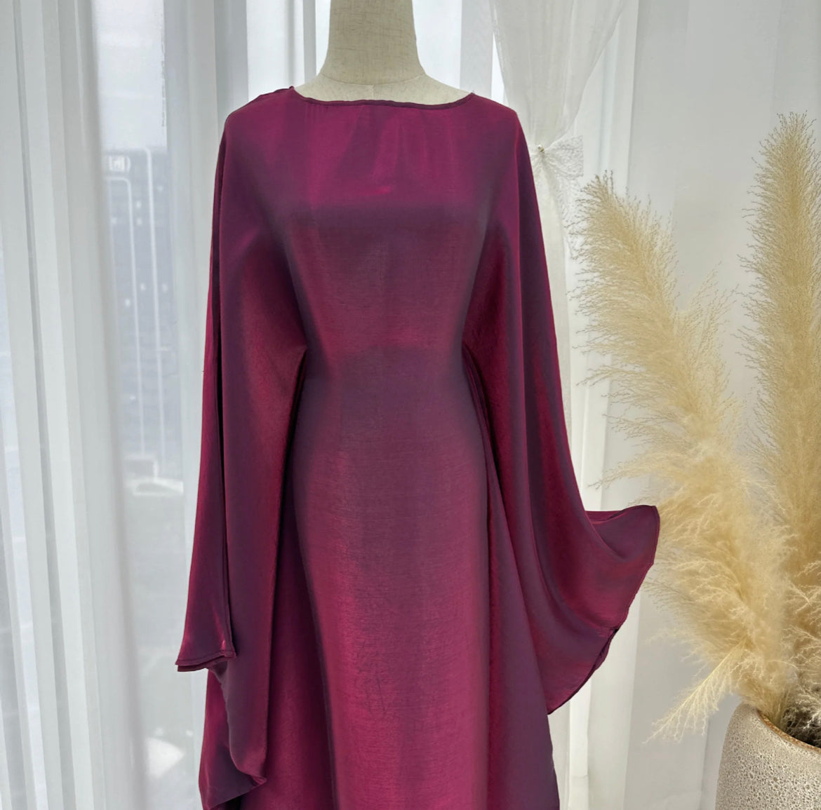 Made of high-quality soft fabric that is comfortable and elastic. Not see through. fashionable, elegant, loose fit, buttoned at the back, glamorous shimmery satin that sparkles when the sun shines.